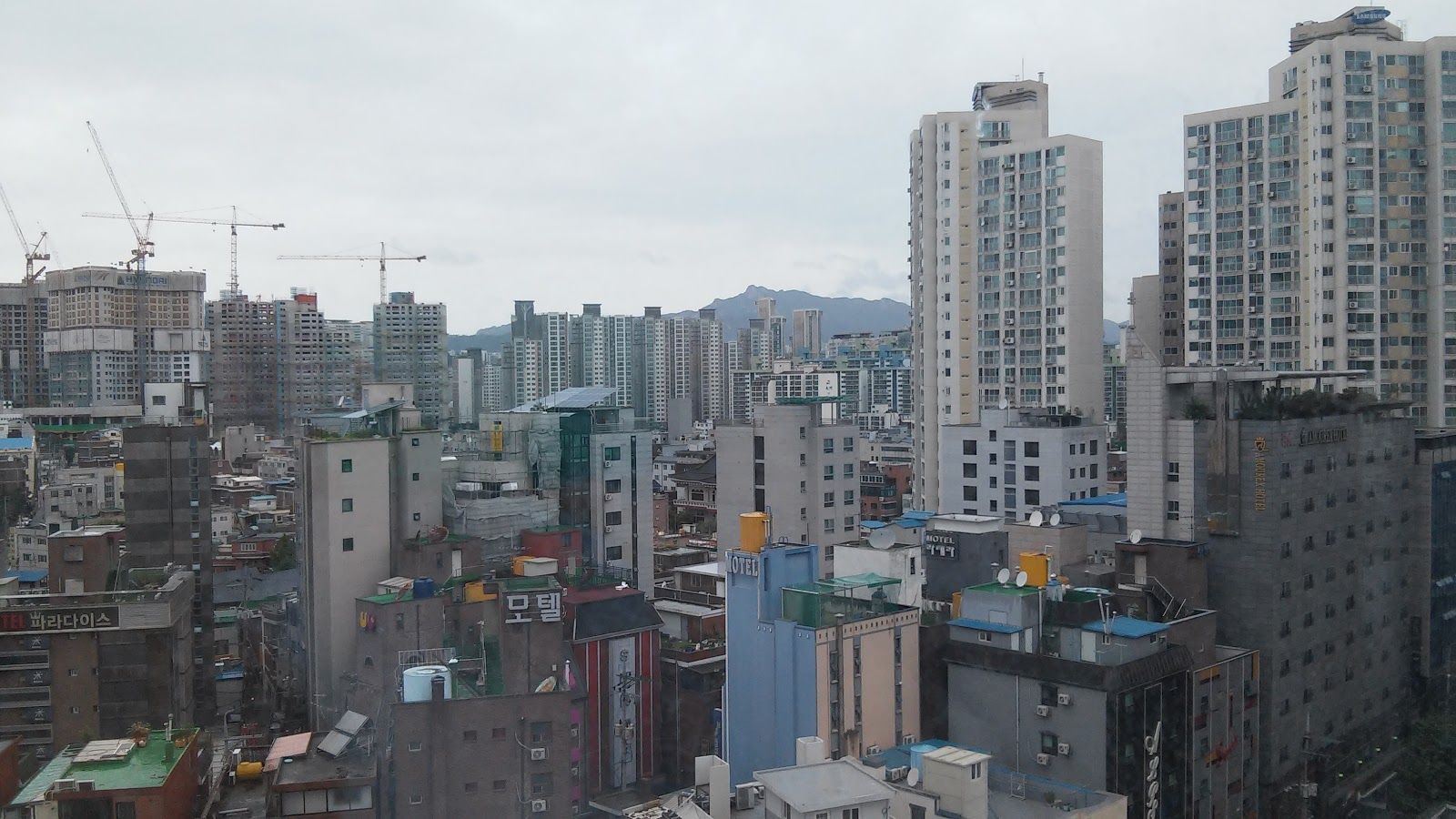 I finally arrived at the airport in Incheon, South Korea around 3pm local time. The process of getting out of the airport took about 1 hour because of customs and all the foreigner documentation I had to do. I was finally able to gather my checked baggage and exchange the $60 I had to some Korean Won. Jaehoon, the Interim Resident Director for ISA Seoul, was waiting there at the airport to help me get to the Konkuk campus. His English was a lot better than I was expecting. I found him to be very nice and pretty funny. He got me and a fellow ISA student a taxi to Konkuk. The ride was about 1 hour and traffic was crazy! So many cars... Everyone and I mean everyone has tinted windows so all you can see are their arms, if that!